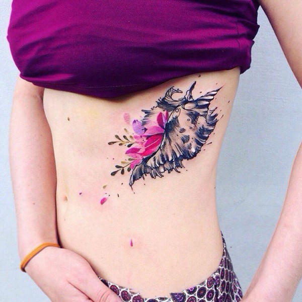落红不是无情物,化作春泥更护花,腰部花蕊彩绘纹身