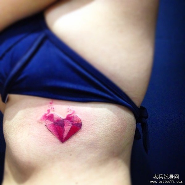 侧腰下清新泼墨心形钻石纹身图案