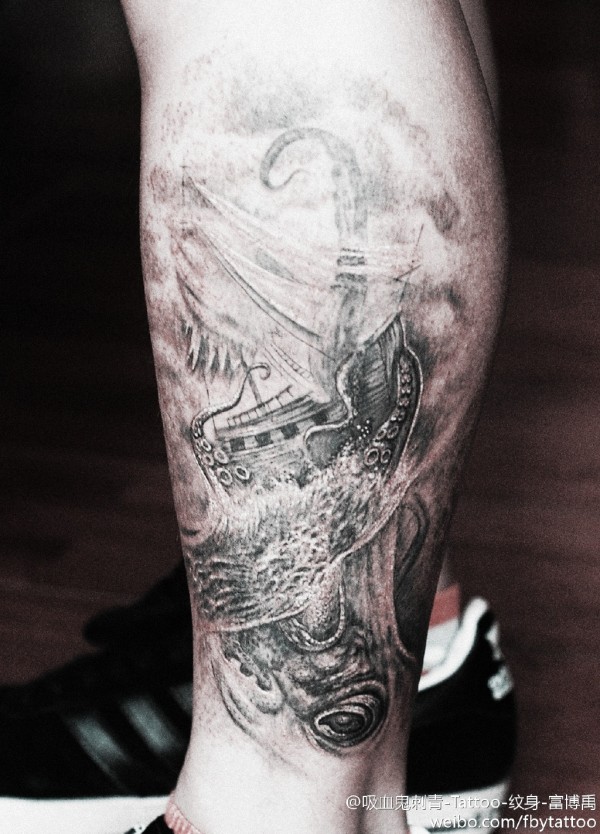腿部鳌鱼纹身图案_腿部纹身图案大全_纹身图吧