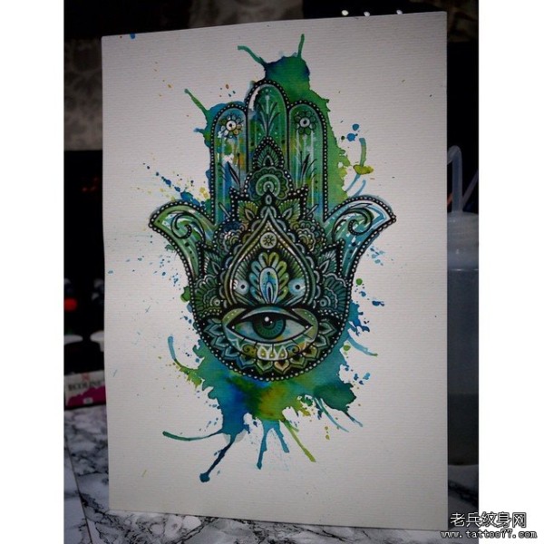 法蒂玛之手彩绘泼墨纹身图案手稿