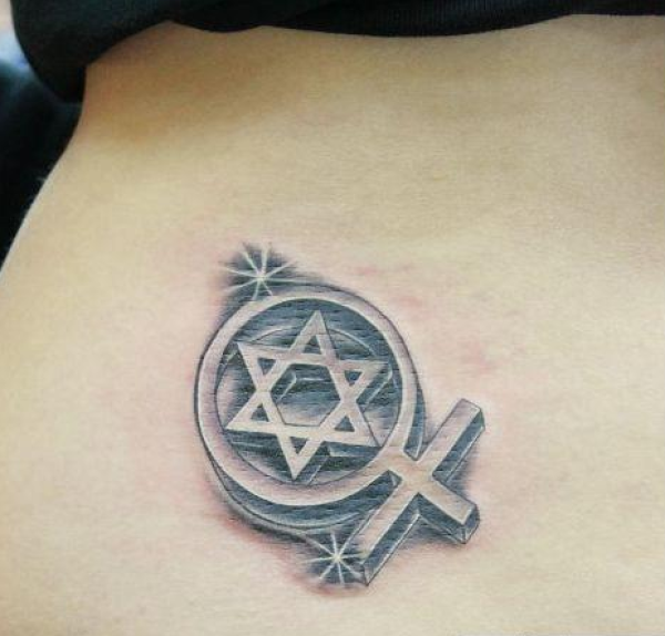 女生后腰纹身黑白灰风格抽象线条纹身图案