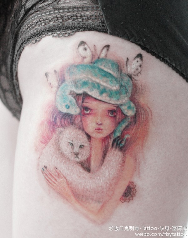 性感女生满背创意文身作品