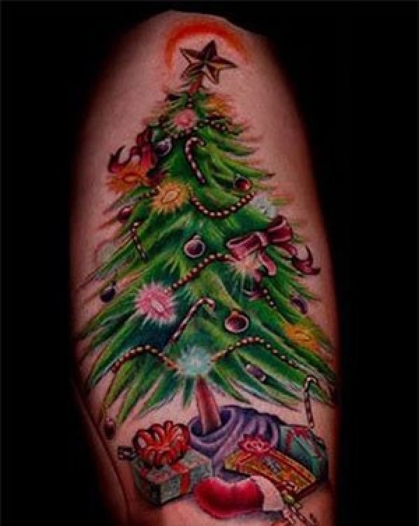 各种漂亮的圣诞树和圣诞老人纹身图案
