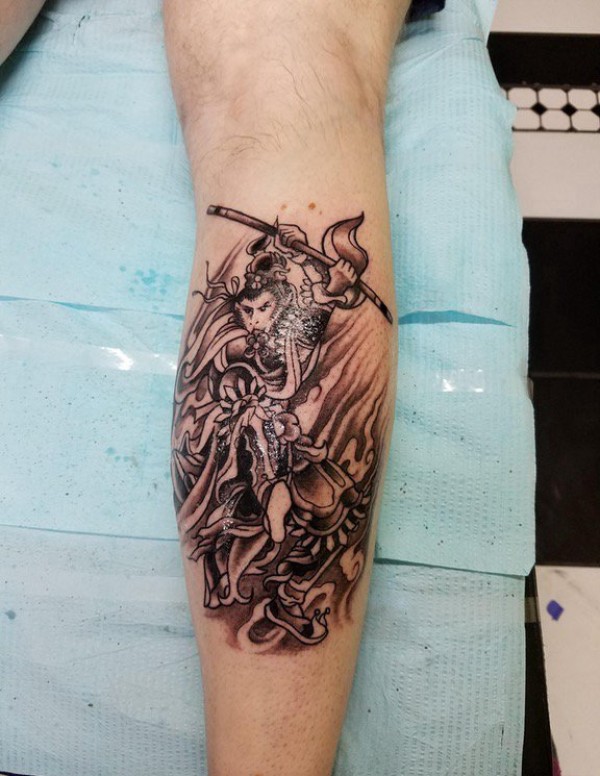 黑灰色经典个性线条纹身神话人物孙悟空纹身图片