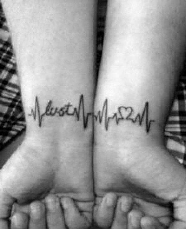 简单的线条心形连接电波心电图纹身图案