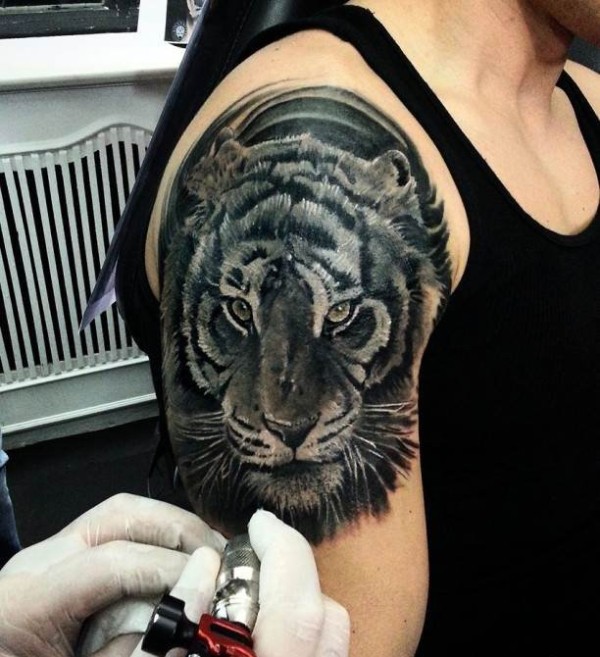 霸气半胛老虎纹身_动物纹身图案大全_纹身图吧