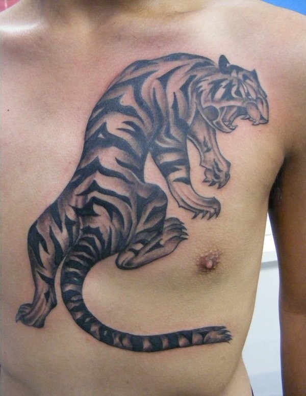 男性们都喜欢这样帅气的凶猛的老虎纹身图案