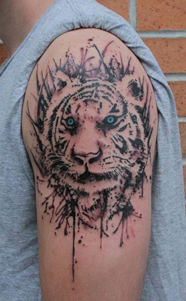 男性们都喜欢这样帅气的凶猛的老虎纹身图案