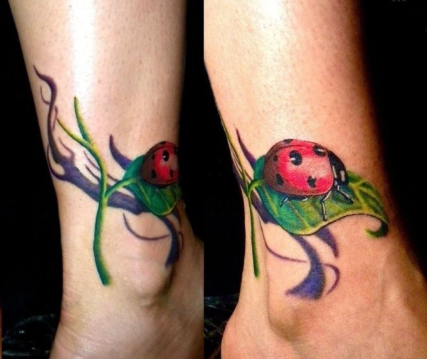 女孩就喜欢这样清新可爱的小瓢虫纹身图案