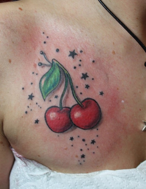 女性身上看起来是如此可口的水果樱桃纹身图案