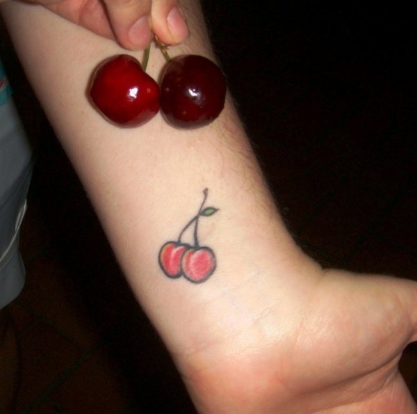 女性身上看起来是如此可口的水果樱桃纹身图案