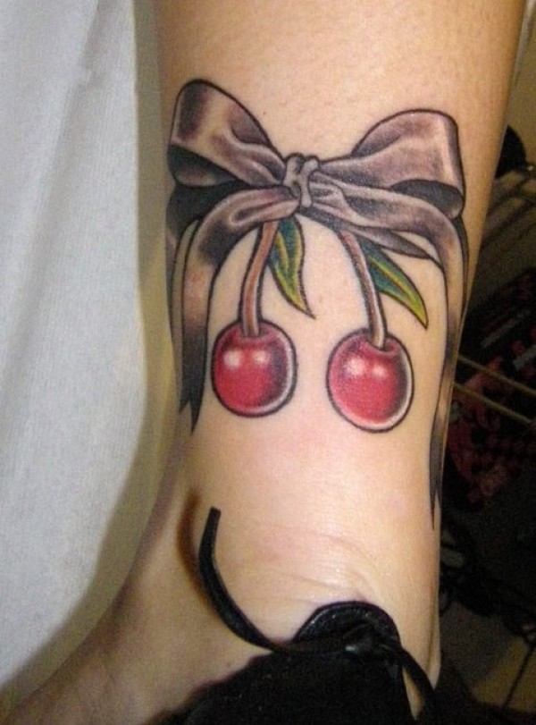 女性身上看起来是如此可口的水果樱桃纹身图案