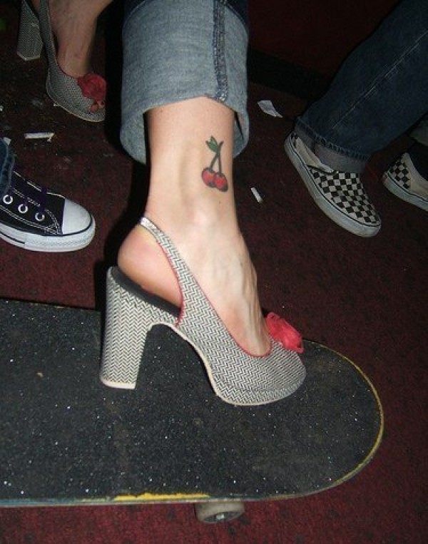 女性身上看起来是如此可口的水果樱桃纹身图案