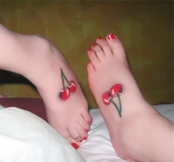 女性身上看起来是如此可口的水果樱桃纹身图案