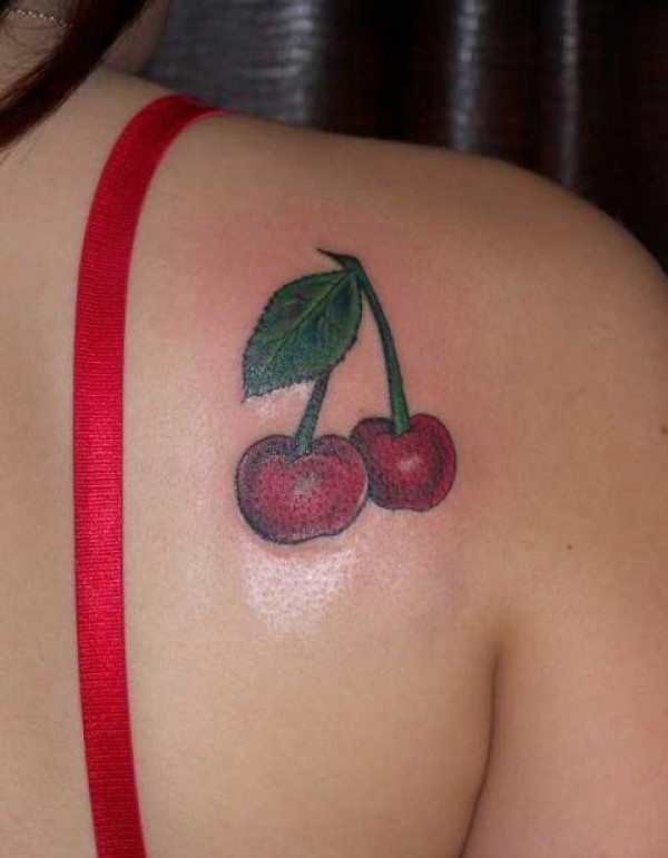 女性身上看起来是如此可口的水果樱桃纹身图案