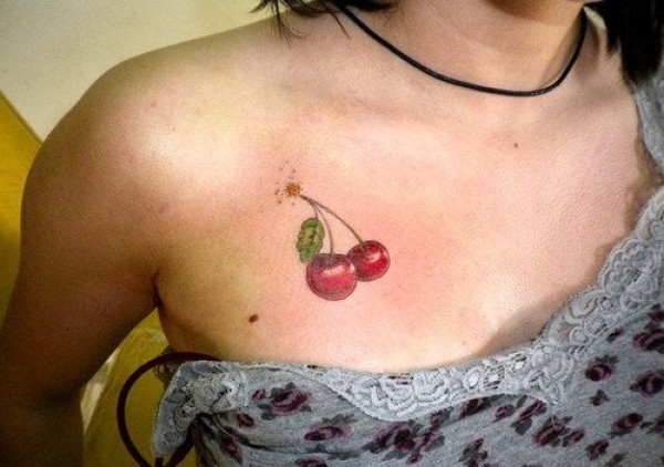 女性身上看起来是如此可口的水果樱桃纹身图案