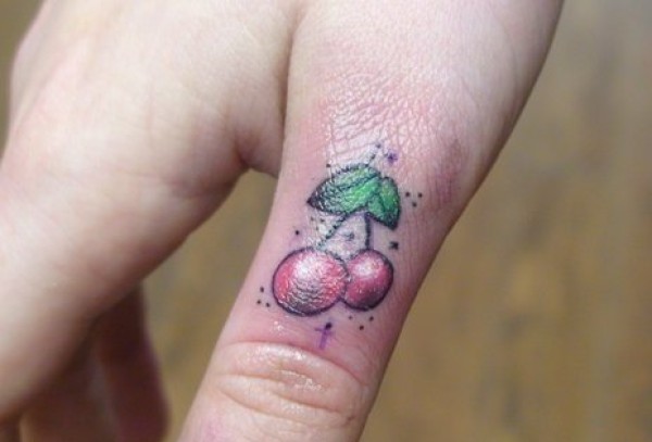 女性身上看起来是如此可口的水果樱桃纹身图案