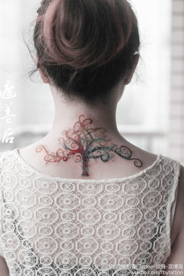 后颈部纹身小图--9张女生脖子后颈处的简约纹身图案