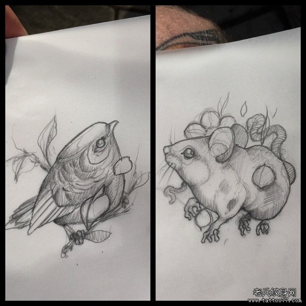 一组18张漂亮的欧美newschool动物纹身手稿图案
