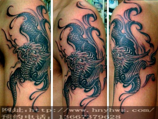龙纹身手稿_一组老传统黑灰龙手稿纹身图案
