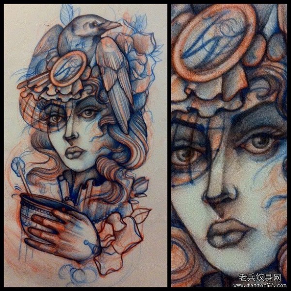 能面万媚纹身手稿_52张日式能剧面具纹身手稿图案素材欣赏