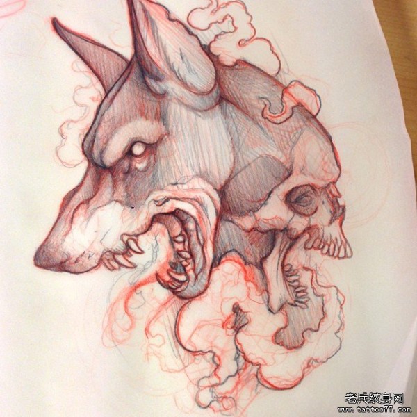 龙纹身手稿_一组老传统黑灰龙手稿纹身图案
