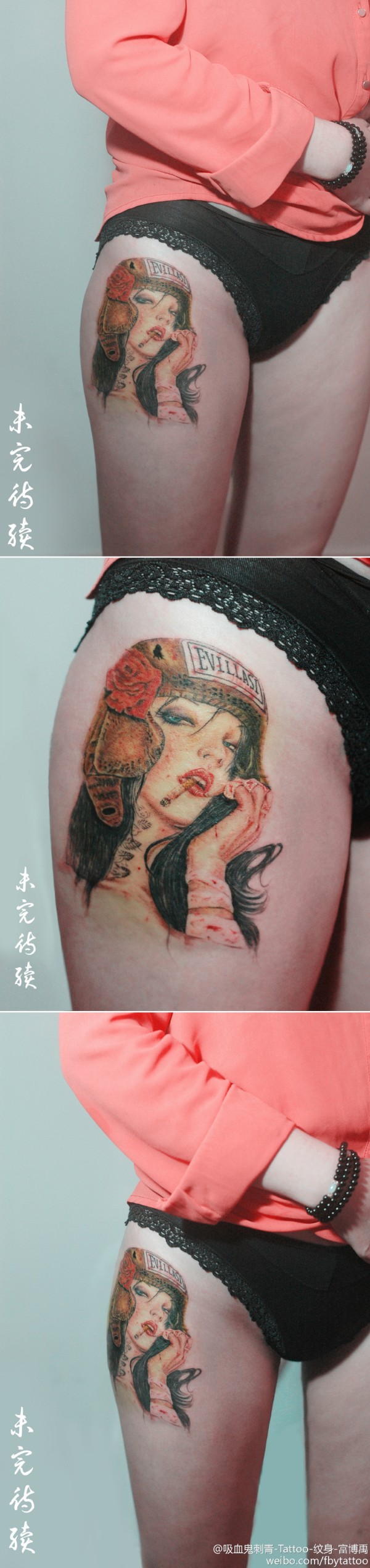 传统花腿纹身--18张传统风格的大花腿纹身图案作品