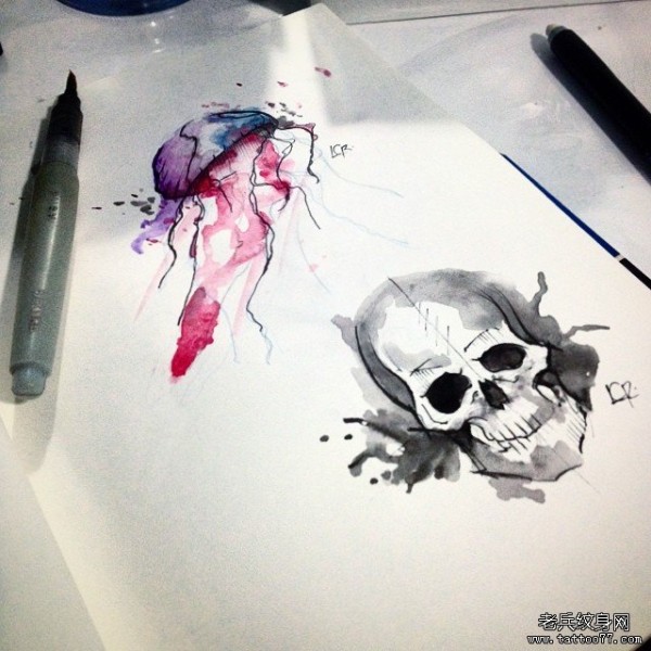 双鱼座纹身手稿_45张十二星座之双鱼手稿纹身图案