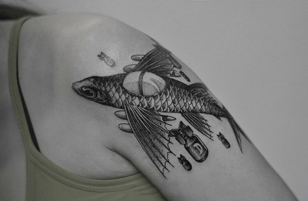 双鱼座纹身手稿_45张十二星座之双鱼手稿纹身图案