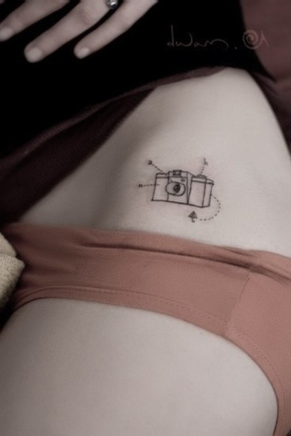 性感腰部的迷你相机纹身图案