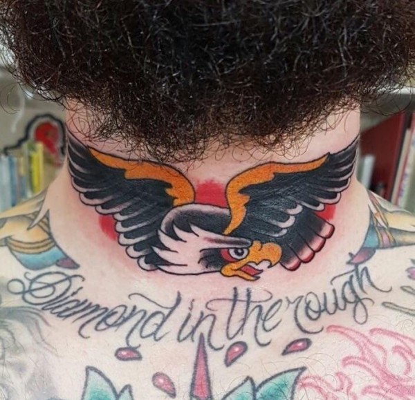 彩色传统纹身脖子老鹰纹身动物图片