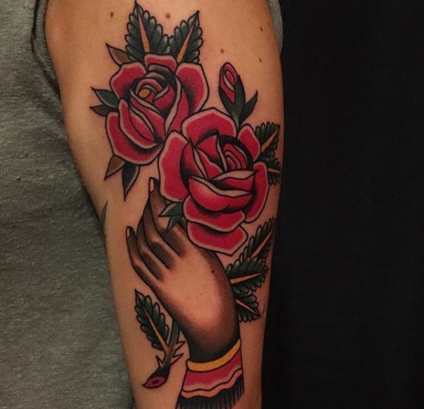欧美玫瑰纹身 男生手臂上花朵纹身图片