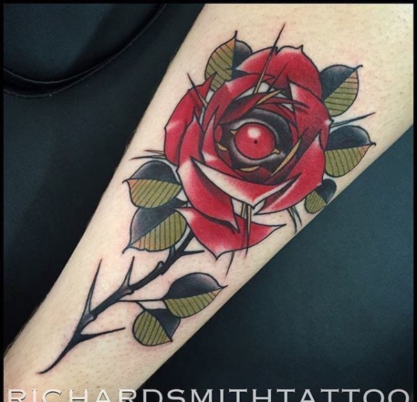 欧美玫瑰纹身 男生手臂上花朵纹身图片