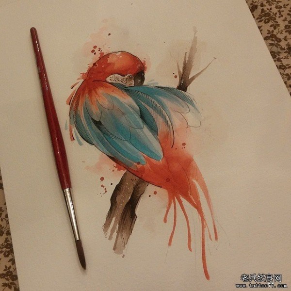 欧美泼墨小清新鹦鹉纹身图案手稿