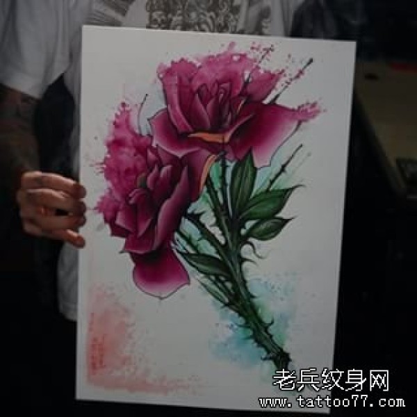 欧美玫瑰纹身 男生手臂上花朵纹身图片