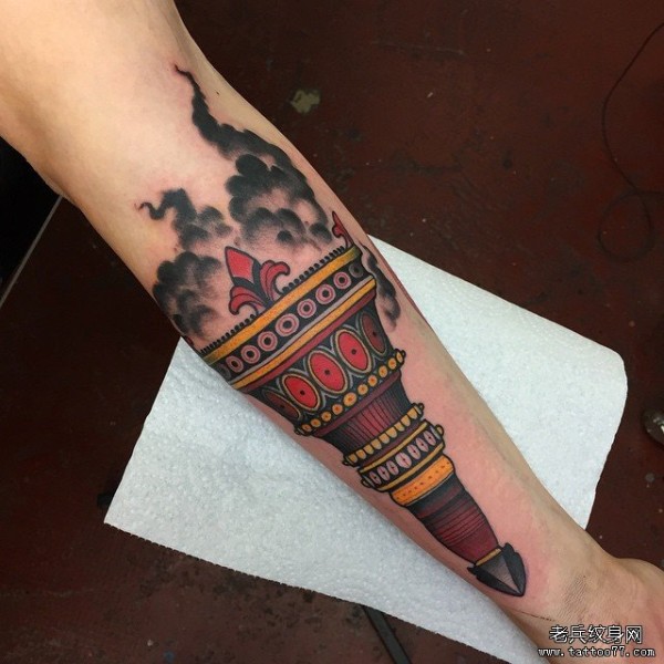 小臂火炬彩色欧美纹身图案