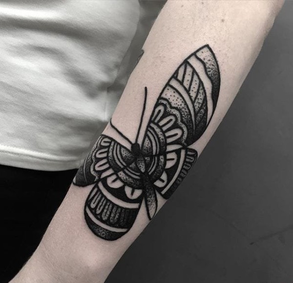 酷酷的点刺技巧黑白简洁纹身图案