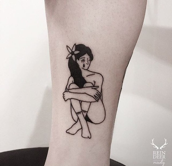 女孩黑白简单个性线条纹身图案
