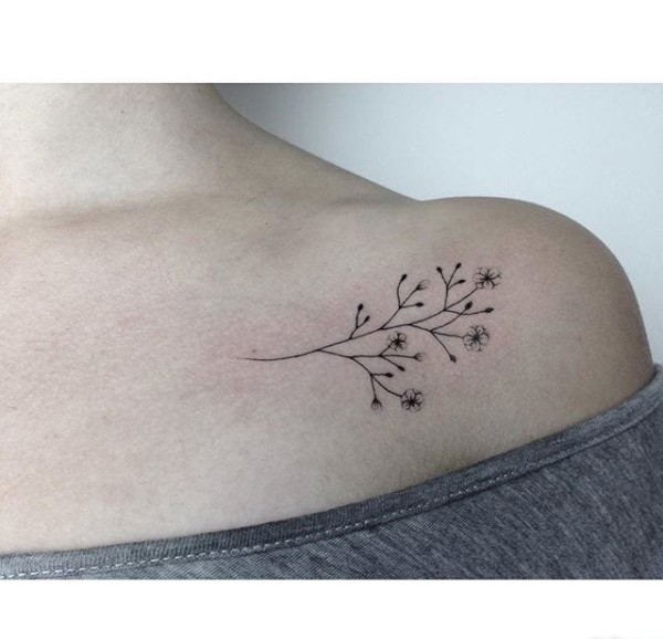 后肩唯美花藤英文图案图片_植物纹身图案大全_纹身图吧