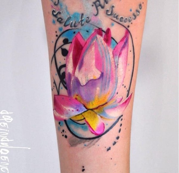 女生中国风花卉泼墨纹身图案
