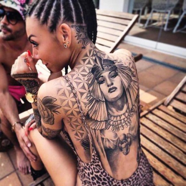 女生满背女神肖像纹身图案