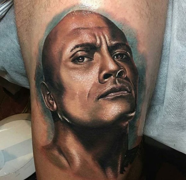 帅气的彩色花腿纹身水墨画纹身图案