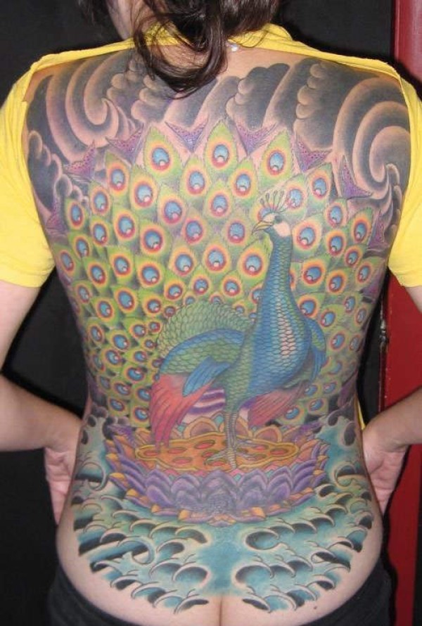 彩色的鸟纹身满背孔雀纹身火凤凰纹身动物图案纹身