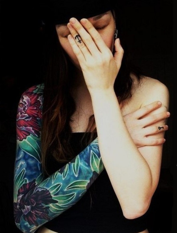彩色的植物藤花朵纹身动物满臂花臂纹身图案大全