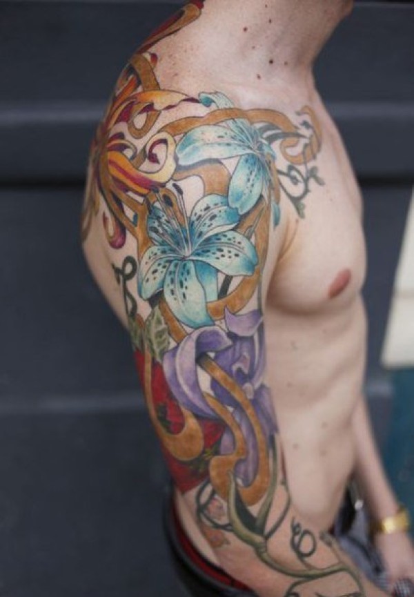 彩色的植物藤花朵纹身动物满臂花臂纹身图案大全