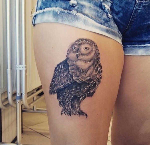黑色线条几何纹身点刺技巧猫头鹰纹身动物图案纹身