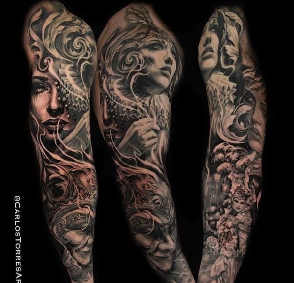 能面万媚纹身手稿_52张日式能剧面具纹身手稿图案素材欣赏