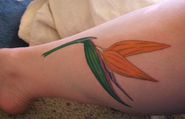 女生小清新纹身彩色天堂鸟花纹身植物纹身图案