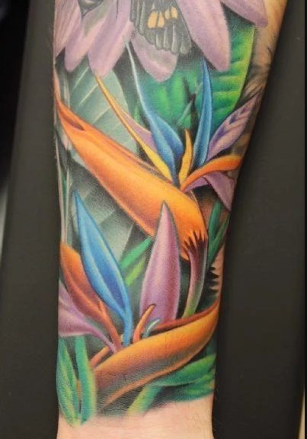 女生小清新纹身彩色天堂鸟花纹身植物纹身图案
