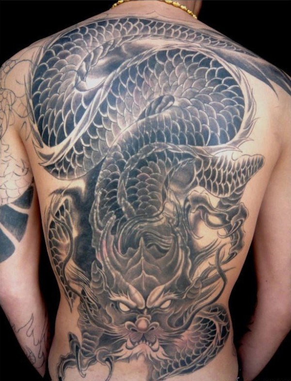 满背霸气黑色龙纹身图案